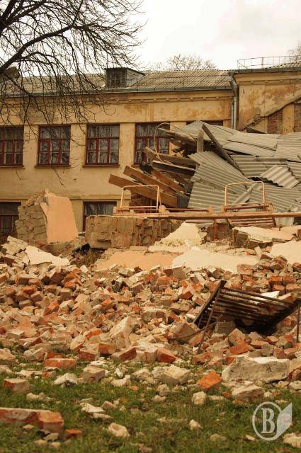 Ранок, 12 година дня. Видовище зруйнованого спортзалу 11 школи просто вражає. Доброю звісткою залишається те, що ніхто не постраждав. Хоча ні. Голуби, що мешкали на даху, залишились без житла. Вони ходять навкруги руїн і нічого не можуть зрозуміти.