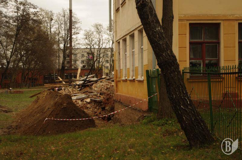 Біля школи вже побувало «начальство». Роздало коментарі і роз’їхалося. Щоправда залишились ще деякі чиновники. Вони стояли. Мовчали. Курили. Кудись телефонували. Стояли і троє робітників, у ямі, котру викопали напередодні. Вони намагались щось роздивитись. Коли ми звернули на них увагу – саме чухали потилиці. Шкода, що не встигли зазняти.