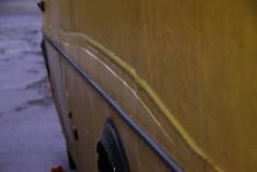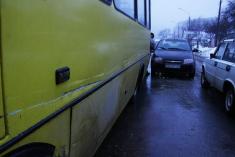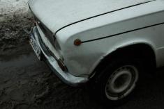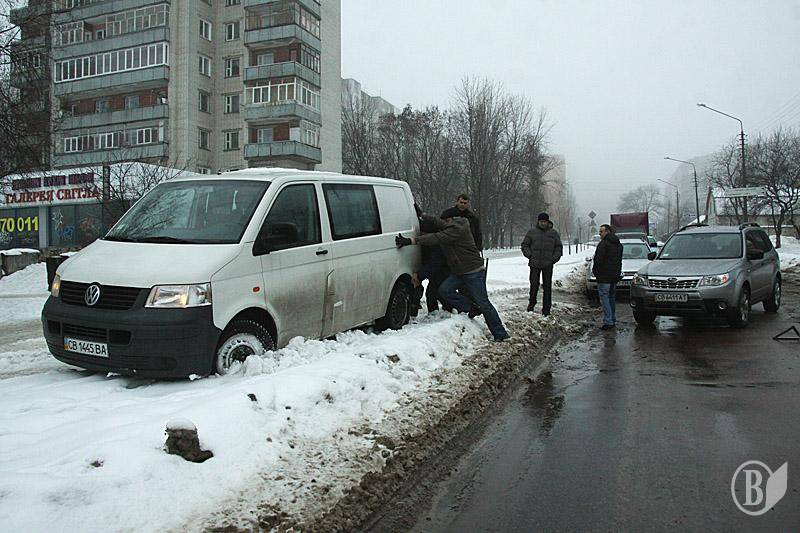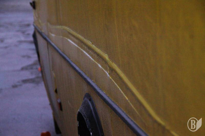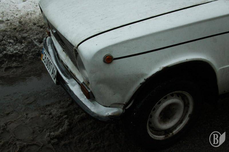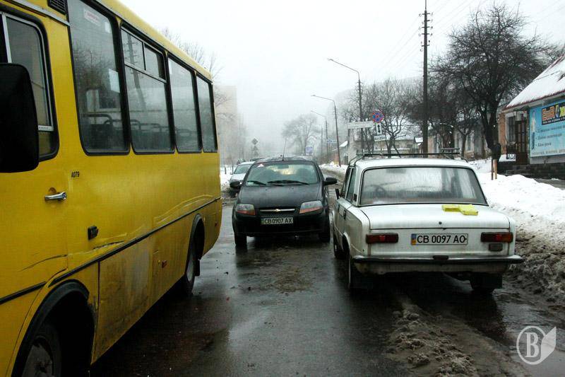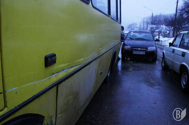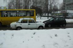 Поцілунок чорненького з біленьким був щирим та логічним. Від нього Шеврове трішечки занесло – сталося напевно помутніння. А ось «повільний» 31 автобус не встиг загальмувати і прочертив бочком по чорненькій машинці.