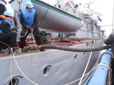Взаємодіючи з морським суховантажним транспортом «Горлівка», «Чернігів» провів двостороннє навчання з організації прийому на ходу різними способами рідких і сухих вантажів.