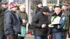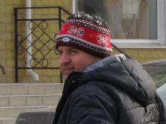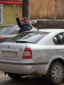 Втім, і мужичок з "Октавії" відрізнився. Після того, як тролейбус посунувся назад, водій авто (на фото у червоній шапочці з візерунками) змушений був ловити свій "пепелац", котрий вільно покотився вулицею.