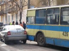 Тролейбус "пошкрябав" Skoda Octavia (фото)