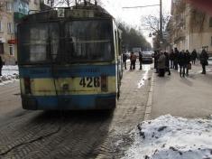 12 березня на вулиці Гетьмана Полуботка в Чернігові тролейбус №426 маршруту №2 не розминувся на старті із зупинки з автомобілем Skoda Octavia tour.