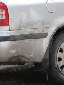 У результаті цієї, дозвольте сказати, ДТП сріблястий "пепелац" отримав пару вм'ятин і кілька подряпин на "кормі".