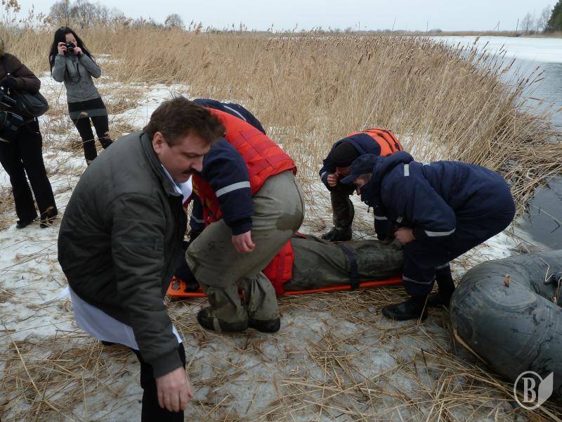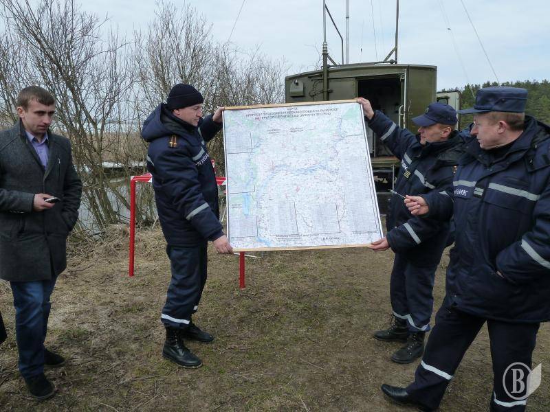 Пожежно-рятувальні підрозділи «евакуювали постраждале населення», гасили умовну пожежу. А от лід вирішили не підривати, позаяк таке шоу могло б завадити нересту риби.