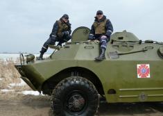 Третій етап. Внаслідок раптового підйому води в зоні затоплення опинилися люди, які своєчасно не встигли покинути небезпечну територію. Для їх порятунку залучено рятувальників на броньованій розвідувально-дозорній машині (БРДМ-2РХ). Ця машина має високі динамічні якості, запас ходу до 750 км, високу прохідшсть та ідатність долати водні перешкоди, пересуватися по суходолу зі швидкістю 80 - 90 м/год., а по воді 8-12 км/год.