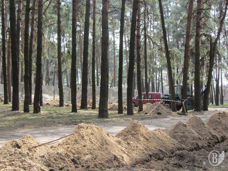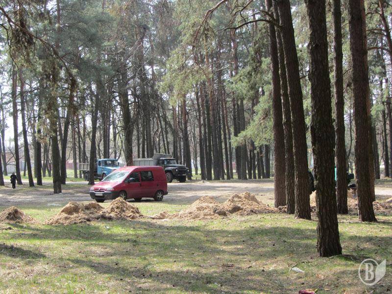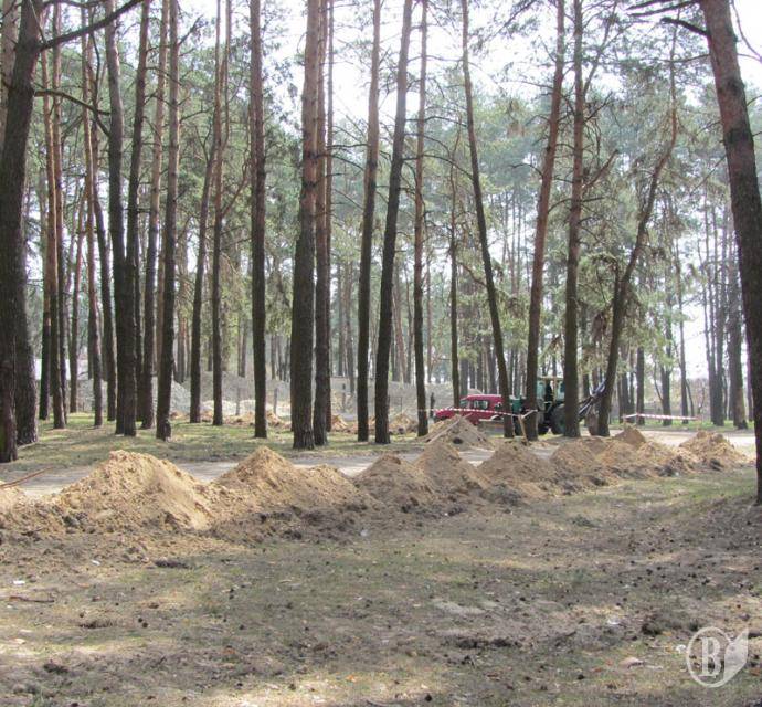 В лісопарк Ялівщина в Чернігові нижче «царського села» навезли піску і порізали траншеями.
