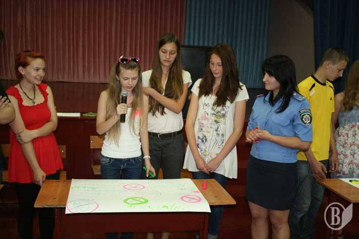 У кожної команди було своє завдання, так, підлітки по-своєму показали своє бачення чинників, які спонукають людей до скоєння злочинів і адмінправопорушень, створювали свої норми і правила поведінки дітей у суспільстві, малювали плакат соціальної реклами на тему «Ні шкідливим звичкам, так здоровому способу життя!» та створювали стінгазету для учнів молодших класів «Як досягнути своєї мети, не порушуючи закон».