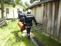 У цей час палав дах господарчої будівлі та вогонь встиг перекинутися на впритул розташовані сараї та гараж. Вогнеборці відрізали електропостачання та негайно приступили до гасіння пожежі й одночасно з цим евакуювали з палаючої будівлі 2 худоби.