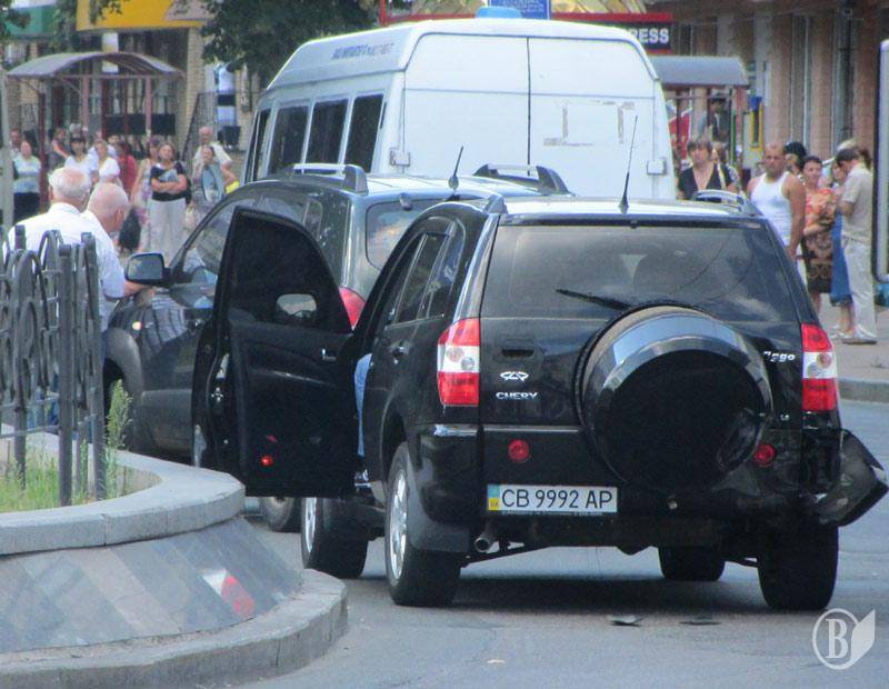 Керівник підприємства «Домобудівник», про який так багато пишуть засоби масової інформації, сьогодні, у п’ятницю, 5 липня близько 16:00 потрапив в аварію у центрі Чернігова біля готелю «Україна».
