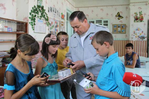 Головний міліціонер Чернігівщини зустрівся з учнями Петрівської школи Бобровицького району аби особисто вручити їм мобільні телефони за неоціненну допомогу слідству в розкритті скоєного в селі вбивства.