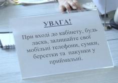 «Внимание! При входе в кабинет, пожалуйста, оставляйте свои мобильные телефоны, сумки, берсетки и пакеты в приемной».