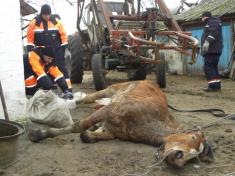 Рятувальники, які прибули на місце події з Чернігова, обв’язали тварину пожежними рукавами, бо звичайними мотузками можна травмувати тварину, та за допомогою трактора-підйомника визволили коня з пастки.