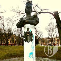 Неизвестные хулиганы в субботу облили зеленкой памятник Ивану Мазепе.