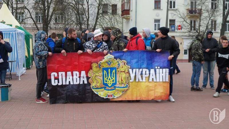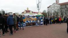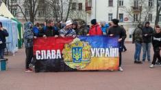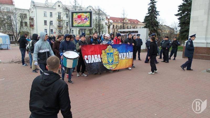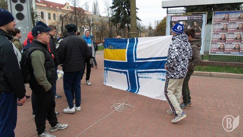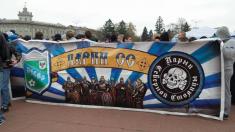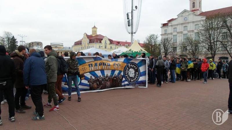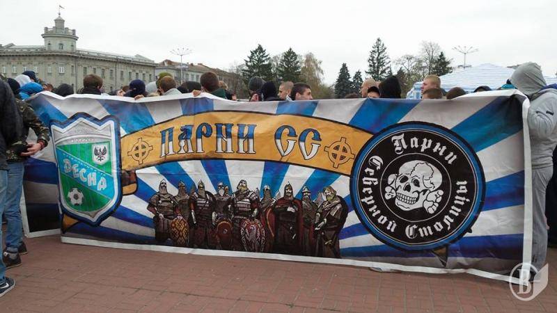 Фанаты – болельщики черниговской «Десны» перед матчем с футбольным клубом «Сумы» провели поступь, начиная с Красной площади города.