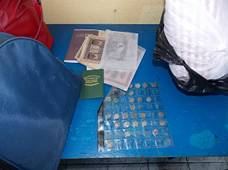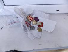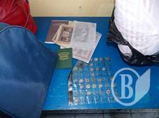 В результате осмотра, в личных вещах водителя, которые находились в багажнике автомобиля, а именно в карманах куртки и в двойном дне чемодана обнаружены медали, монеты, банкноты разных стран и номинала.