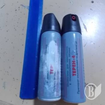 Во время проведения общего с сотрудниками таможни углубленного осмотра личных вещей, в дорожной сумке для документов пограничным нарядом обнаружено два газовых баллончика «Терен- 4М».