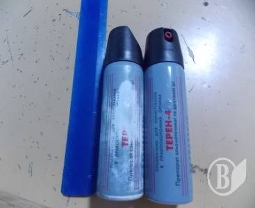 Во время проведения общего с сотрудниками таможни углубленного осмотра личных вещей, в дорожной сумке для документов пограничным нарядом обнаружено два газовых баллончика «Терен- 4М».