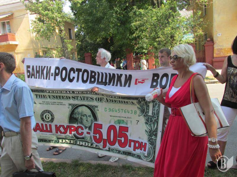 Организатор нервного действа – Андрей Усов рассказал, что они протестуют против своеволия банков, которые неправомерно завышают кредитные ставки, незаконно «сдирают» штрафы с плательщиков. Также люди требуют расчетов по долларовым кредитам по курсу на момент взятия ссуды.