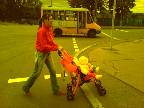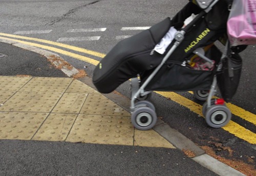Мені самому досить важко (про дискомфорт мова взагалі не йде) щоразу, перед кожним переходом – на початку і в кінці – піднімати коляску, хоча у нас вона досить легка. Але мамам, навіть з однією дитиною, це заподіює величезні фізичні незручності. Після місяця таких поїздок навіть найдорожчі і ультраурбаністічно заточені коляски просто ламаються. Цей факт давно дозволив виробникам дитячого транспорту зробити саме легке подолання бордюру однією з головних переваг в рекламі дитячих колясок.