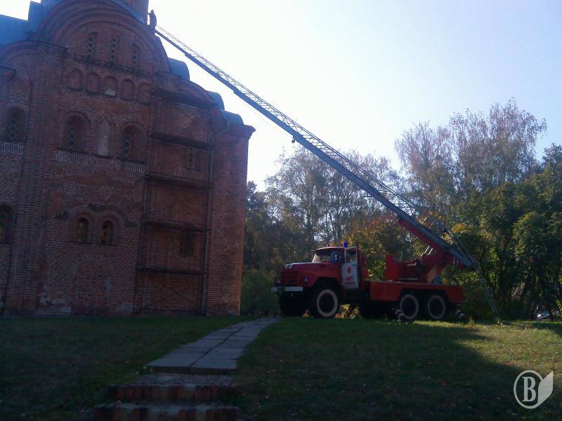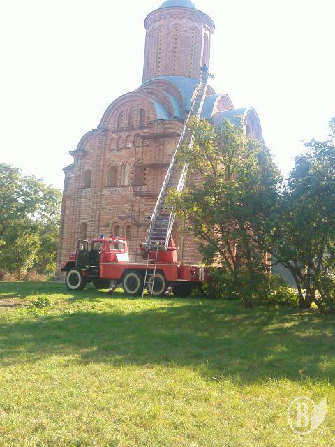 Саме з такою думкою ринули сьогодні вранці до святині люди, що проходили поблизу, побачивши біля неї пожежну машину. Та виявилося, що пожежний автомобіль – без цистерни, обладнаний лише драбиною.