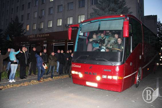 Провести своих побратимов на восток пришли друзья, коллеги, близкие родственники милиционеров. Они пожелали бойцам достойно выполнить свой долг и вернуться домой живыми и здоровыми.