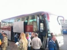 Тридцять військових 13-го батальйону тероборони і два десятки танкістів Першої окремої танкової бригади (дислокується у Гончарівському) після десятиденної відпустки поїхали назад – на Донбас.
