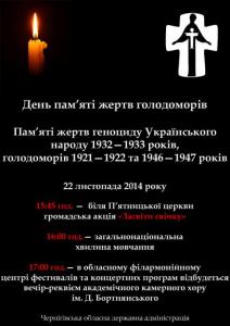 Во время открытия пресс-конференции Андрей Подорван, директор Департамента информационной деятельности и коммуникаций с общественностью Черниговской облгосадминистрации, ознакомил журналистов с планом мероприятий чествования памяти жертв геноцида Украинского народа 1932–1933 годов, голодоморов1921–1922, 1946–1947 гг. в Украине 22 ноября п.г. в областном центре и представил баннер, посвященный этому грустному событию в истории нашей Отчизны.