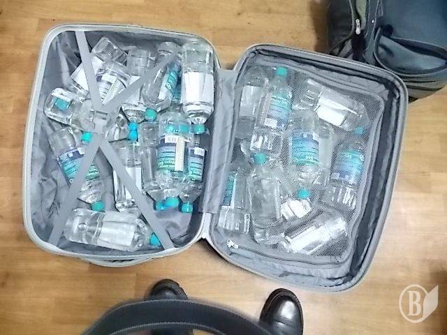 В ході проведення контролю ІІ лінії спеціальною оглядовою групою за участю співробітника митниці, при огляді валізи цього пасажира, було виявлено 40 літрових пляшок розчинника №646.