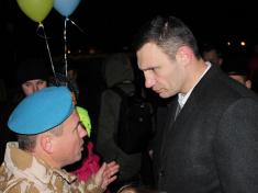 - Хлопці повернулися із зони АТО. У суботу їх зустрічатиме місто, міська влада, кияни зможуть з ними поспілкуватися, - розповів мер міста Києва Віталій Кличко, який особисто приїхав зустріти воїнів до Десни.