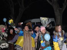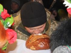 Жителі Десни та близькі бійців скандували «Герої!», «Дякуємо за відвагу!», «Слава!», співали пісню «Як тебе не любити, Києве мій…» . Крім цього, в знак пошани до захисників України, дівчата у народному вбранні зустріли військових хлібом та сіллю.
