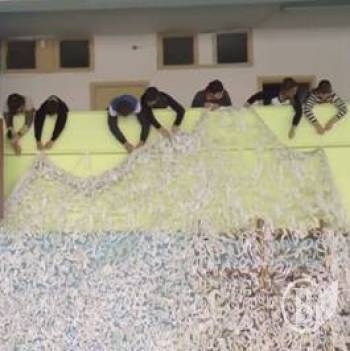 Черниговские школьники из 31-й гимназии под руководством Женской сотни Самообороны вязали маскировочную сетку для воинов в зону АТО.
