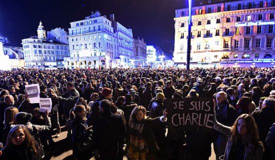 Акції протесту пройшли майже у всіх містах Франції: Парижі, Марселі, Тулузі, Страсбурзі та інших містах. Люди вшановують пам'ять загиблих свічками. Журналісти французьких газет на інформаційних агенцій виражають свою солідарність з загиблими на своїх робочих місцях, тримаючи плакати "Je Suis Charlie".