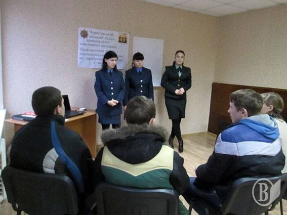 Майор внутренней службы Юлия Василенко – заместитель начальника КИИ ЧГО Государственной пенитенциарной службы ознакомила подопечных и их родителей с некоторыми юридическими понятиями и терминами, рассказала о видах наказаний за наиболее распространенные правонарушения и провела параллель между подростками, которые прошли «тюремные университеты» и законопослушной молодежью, сравнив перспективы молодого поколения в будущей жизни.