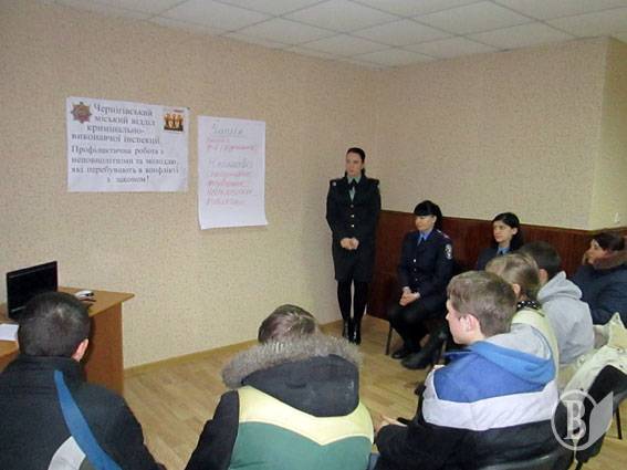 Сотрудники криминальной милиции по делам детей Черниговского городского отдела УМВД Украины в Черниговской области, совместно с коллегами из линейного отделения на ст. «Чернигов» и криминально-исполнительной инспекции, в рамках операции «Каникулы» провели профилактическую встречу с подростками, которые находятся на учете, и их родителями.