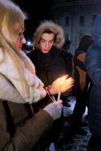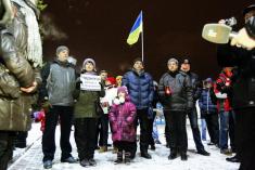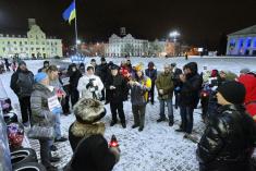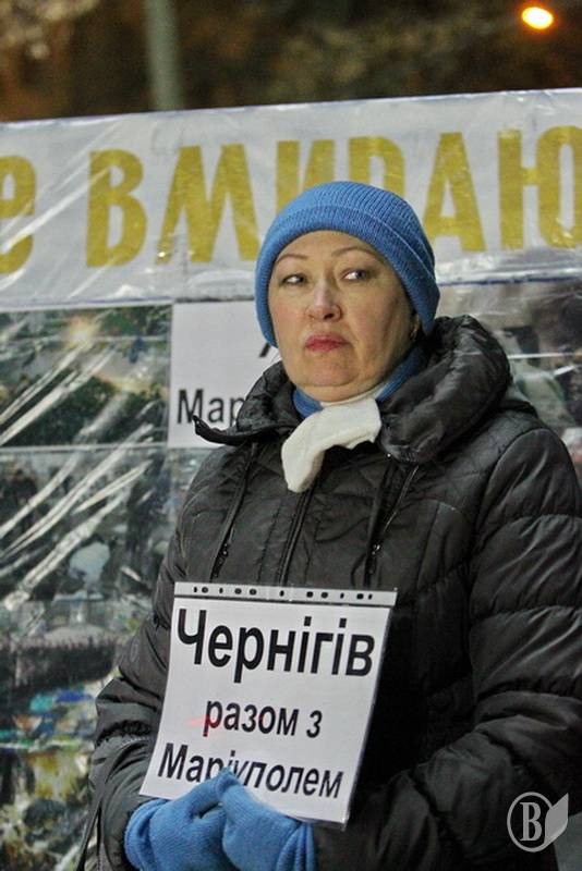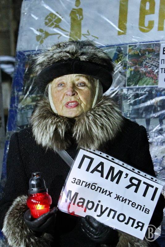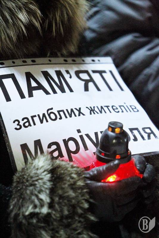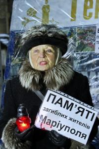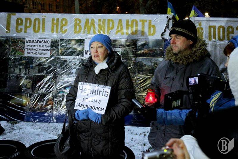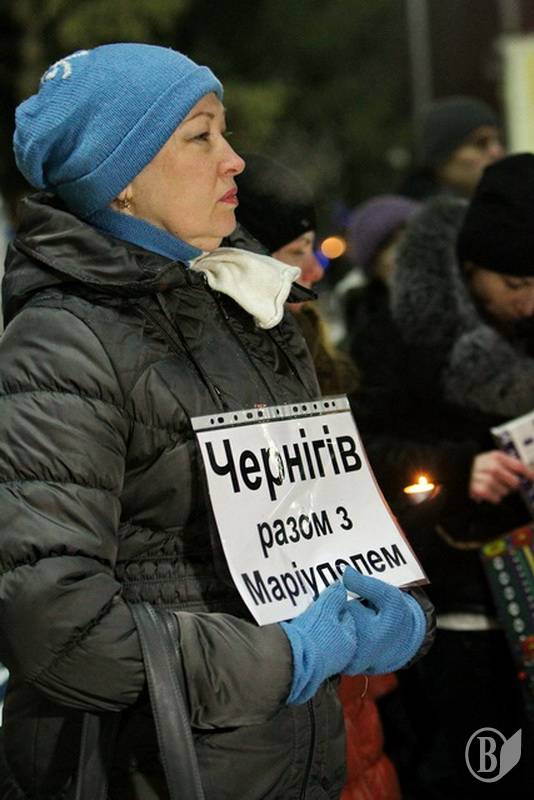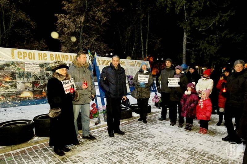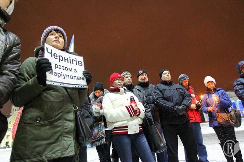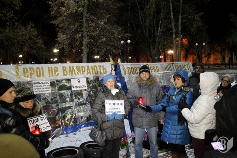 Кілька десятків чернігівців увечері 25 січня біля стели Небесної сотні на Красній площі вшанували жертв теракту у Маріуполі і закликали визнати ДНР та ЛНР терористичними організаціями.
