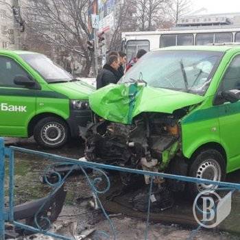 Інкасаторів, які перебували в авто, госпіталізували. Ймовірна причина авто - маневри водія інкасаторського автомобіля через порушення правил дорожного руху пішоходом, який вискочив на "червоне світло".