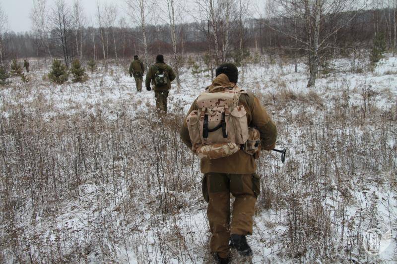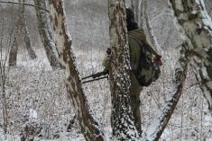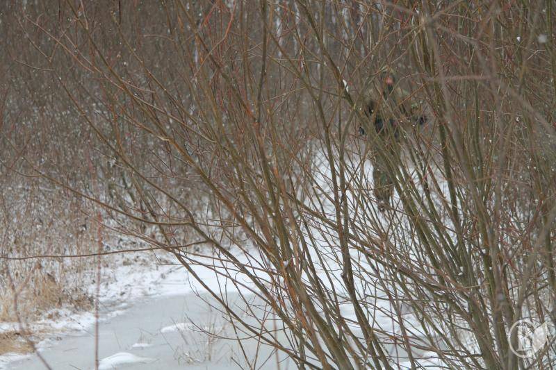 В одному з місці чуємо постріл. Головні подають знак. Присідаємо. Досвідчені воїни сходяться на тому, що постріл з автоматичної зброї. На російській території. Припускають, що якийсь браконьєр підстрелив чи намагався підстрелити дичину. Більше пострілів нема. Рухаємось далі.