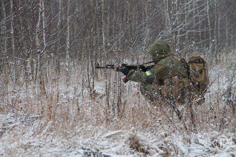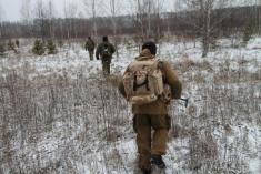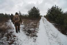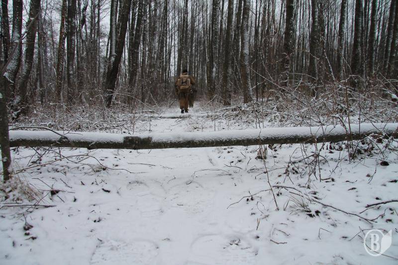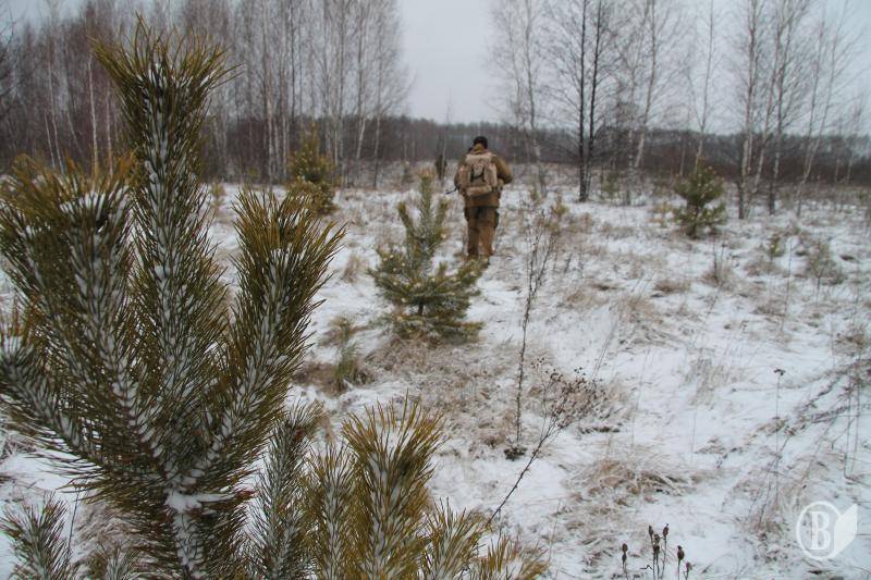 На цій ділянці українського-російського кордону на території Чернігівщини - ліс, чагарники, болота. По підмерзлому болоту йти найважче. Але добре, що підмерзло.