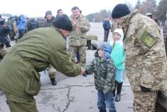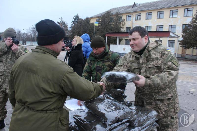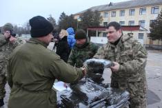 — Нині до одностроїв, що красуються на вас, ми додатково передаємо утеплені флісові кофти від українців Канади та небайдужих волонтерів. Хочу подякувати усім людям та волонтерським організаціям за надану допомогу. Разом з нами вони також прагнуть щоб Україна була незалежною, вільною та самостійною державою, — зазначив Юрій Гусєв.