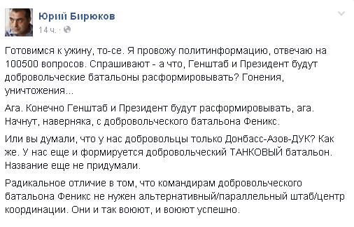 Він спростував чутки про розформування українських добровольчих батальйонів та повідомив про створення нового.