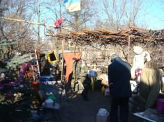 На фото, які зробила Тетяна Миргородська видно, що вони лежать накриті пластиковим столом на пустирі в Пісках. Біля них розвантажується волонтерська машина, ніхто не вбачає в них загрози.