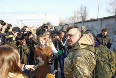 Захисників Вітчизни привітали з поверненням на рідну землю мешканці обласного центру, рідні та близькі бійців. Керівники військового гарнізону, органів державної влади та місцевого самоврядування висловили слова подяки військовим за захист територіальної цілісності України, а також пообіцяли всіляко сприяти в подальшому у збережені соціальних пільг та працевлаштуванні бійців.