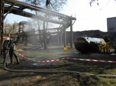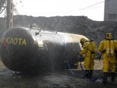 На завершення, підрозділами оперативно-рятувальної служби спільно з персоналом об’єкту відпрацьовані дії по ліквідації надзвичайної ситуації з виливом хімічно-небезпечної речовини. Відділенням радіаційно-хімічного та біологічного захисту Аварійно-рятувального загону спецпризначення УДСНС проведено розвідку стану небезпеки та організовано накладання на пошкоджену цистерну спеціального бандажу. З метою зменшення концентрації парів, пожежно-рятувальним підрозділом проведено осадження небезпечної хмари водними струменями.