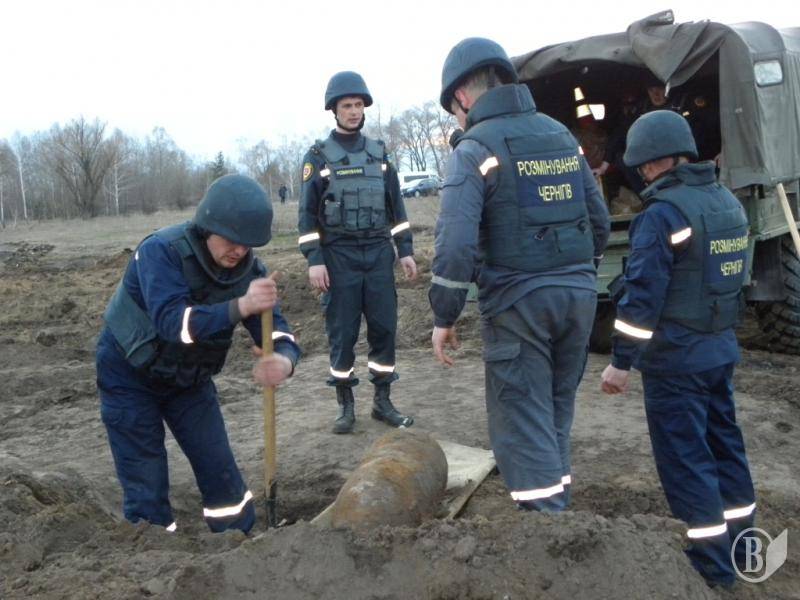 На место события прибыли пиротехники Аварийно-спасательного отряда специального назначения УГСЧС в Черниговской области . Специалисты идентифицировали опасную находку, как фугасную авиационную бомбу ФАБ-250 времен войны.