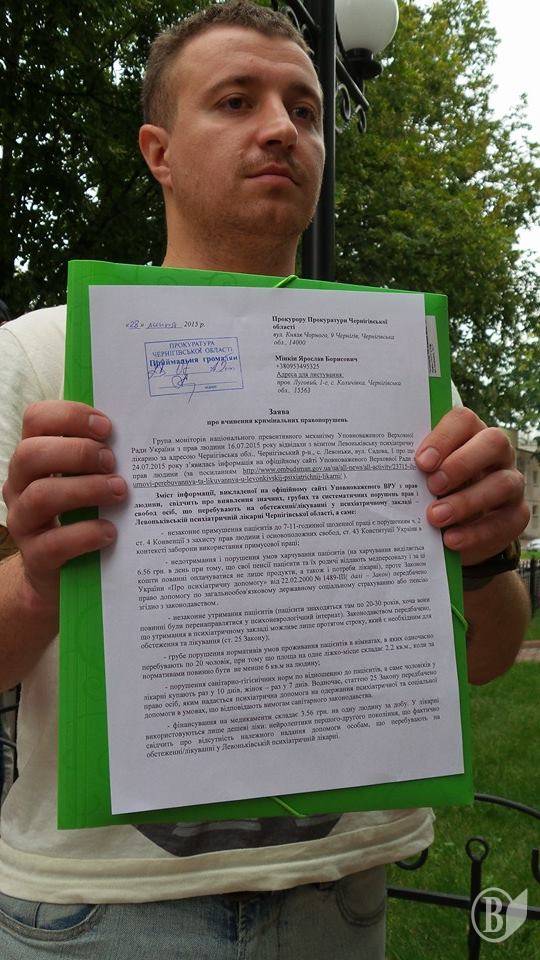 Акція протесту проти порушень прав людей, що перебувають на лікуванні в Левоньківській психіатричній лікарні Чернігівської област відбувається біля прокуратури Чернігівської області