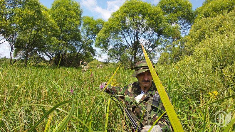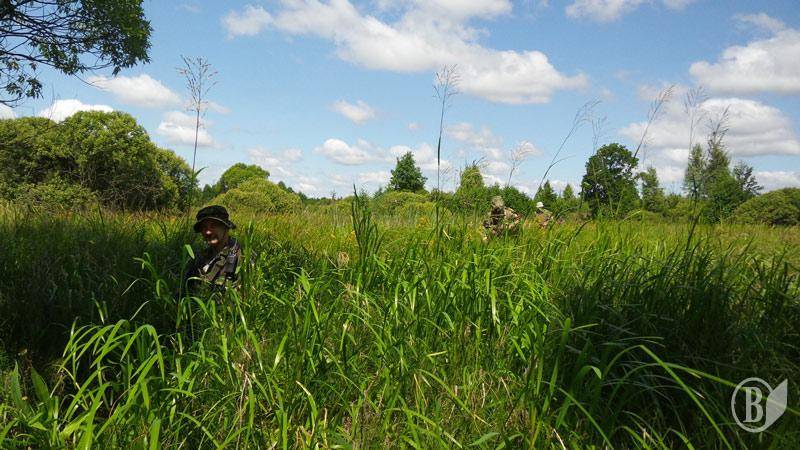 Один із досвідчених спецназівців навчив мене ступати не прямою ногою, а ставити ступню в спеціальному взутті майже перпендикулярно лінії руху, а би приминати осоку і не провалюватися.