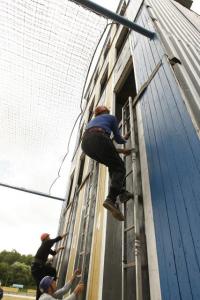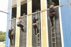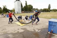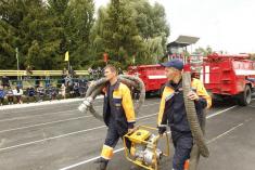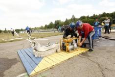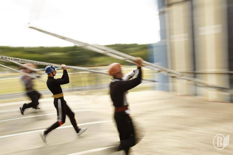 Змагалися пожежники на трьох життєво важливих професійних етапах: штурмова драбина, піднімання по висувній драбині та бойове розгортання.