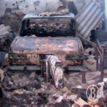 На той момент дерев'яна споруда була майже повністю знищена вогнем і полум'я перекинулося на розташований поруч дерев’яний навіс та автомобіль "Москвич 412".