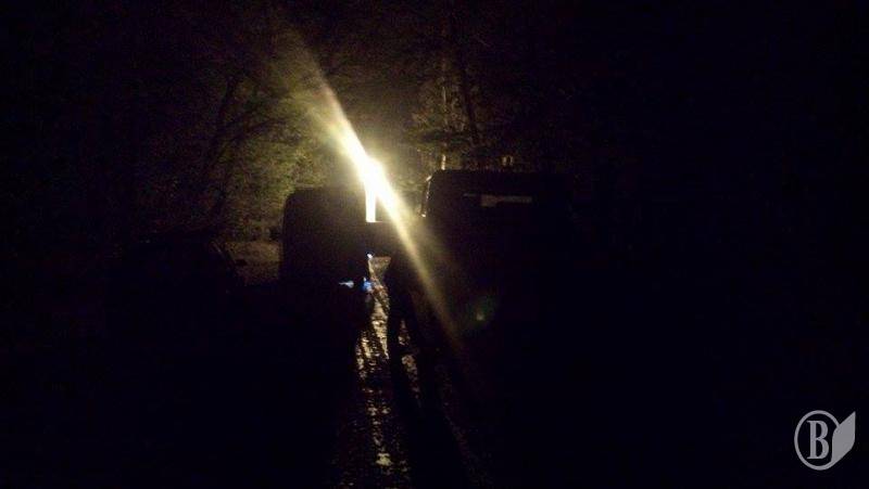 На місці розстрілу інкасаторів неподалік села Скорінець на Чернігівщині, ведуться слідчі дії, незважаючи на ніч.